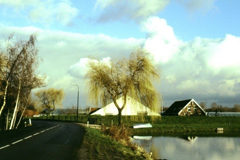 De Ringdijk richting de Vuurlijn, op de achtergrond de Vuurlinie met de boerderij en de tas van Harry van Schie. In 1970 is deze treurwilg rechts geplant op het open stukje grond van het waterschap. Op 24 februari 2006 is deze boom gekapt en gerooid, na 36 jaar. Vlak daarna werd de reden van het kappen bekend, er moest een ontsluiting komen voor de nieuwe woonwijk de “Zwarte wijk”. Dit was het eerste item dat wij als Stichting De Kwakel Toen & Nu op de website hebben geplaatst. De stichting is in 2006 opgericht en bestaat dit jaar alweer 19 jaar.